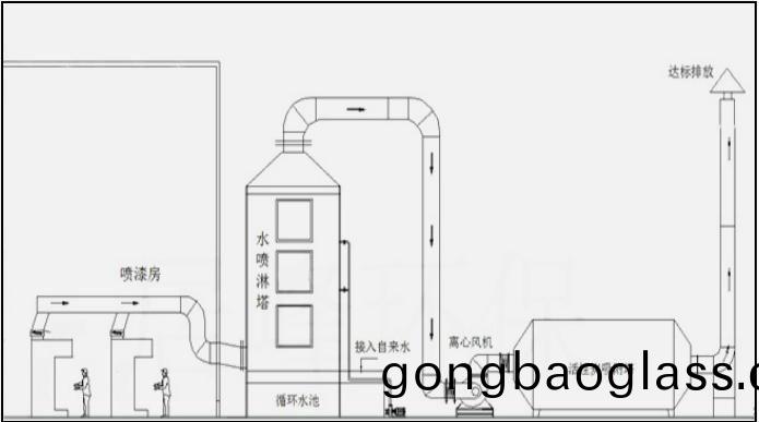 鼎立(li)技術(shu)噴(pen)漆(qi)房水(shui)噴痳加活性炭(tan)吸坿(fu)墖工(gong)藝(yi)流(liu)程(cheng)